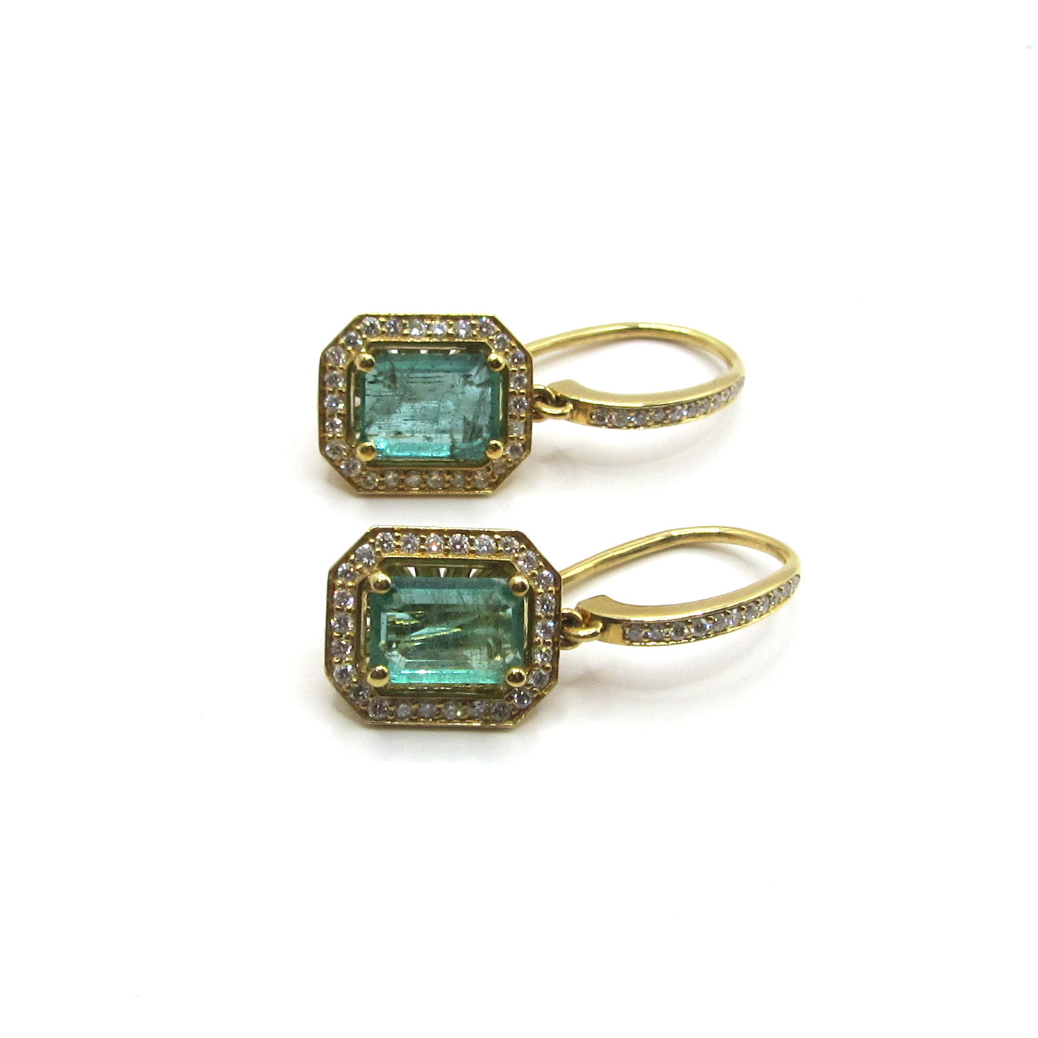 MODELO : Pendientes de oro amarillo con brillantes y esmeraldas.