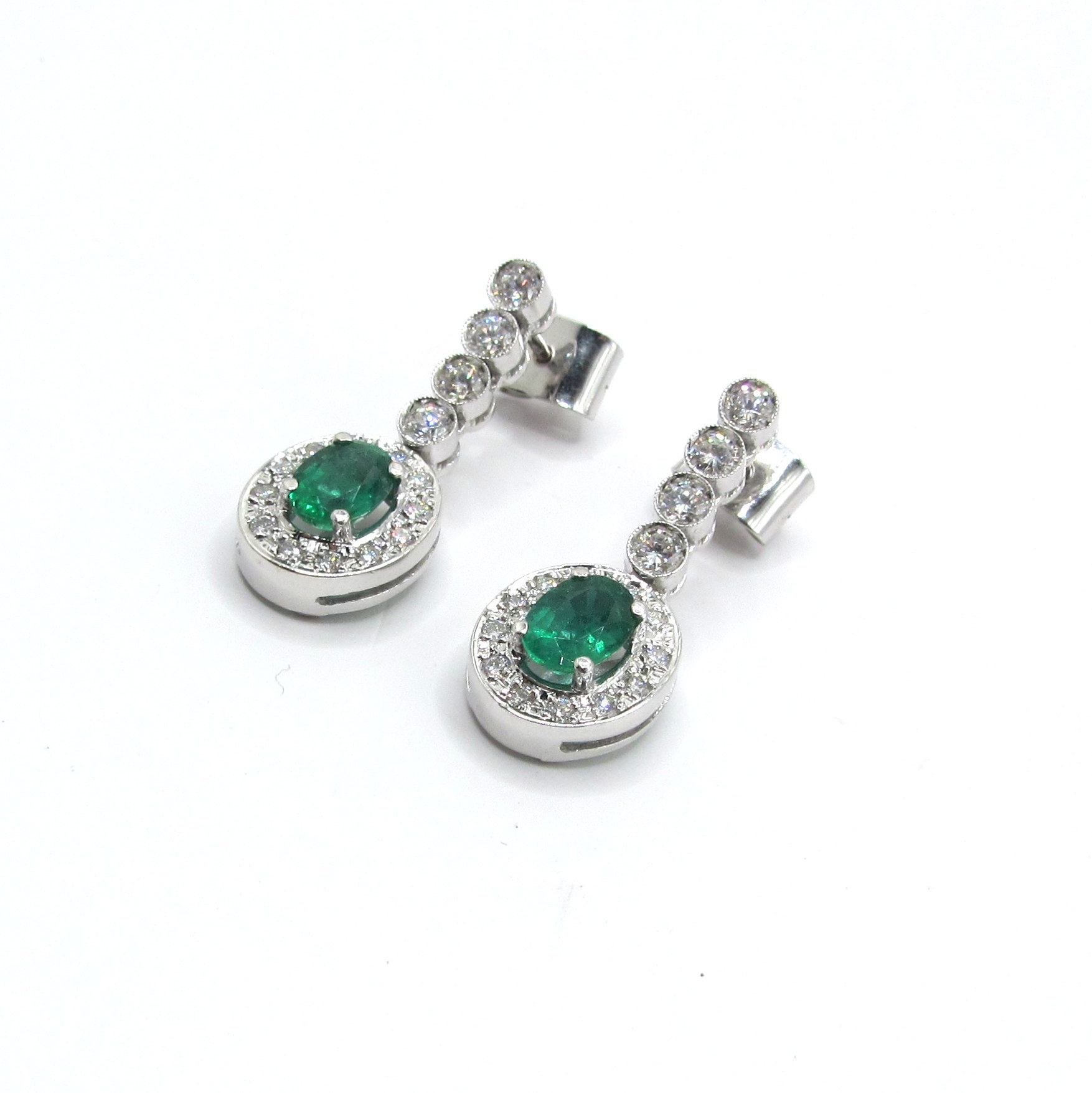 MODELO : Pendientes de oro blanco con diamantes y esmeraldas.